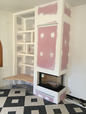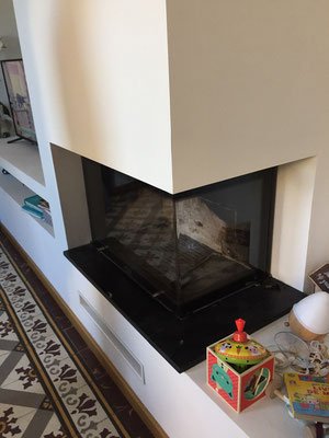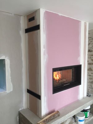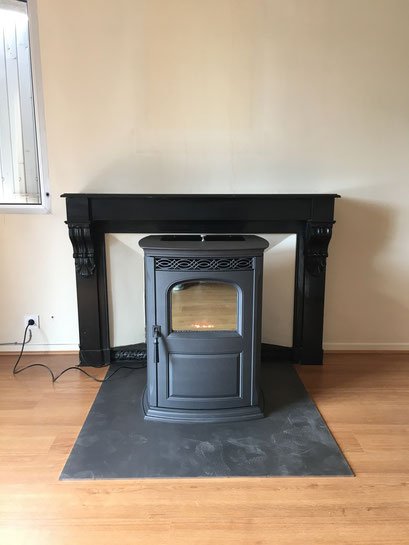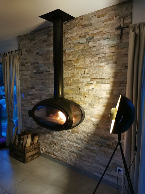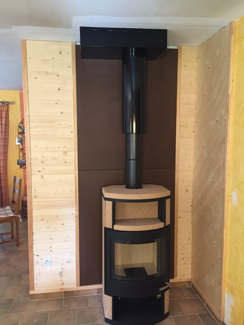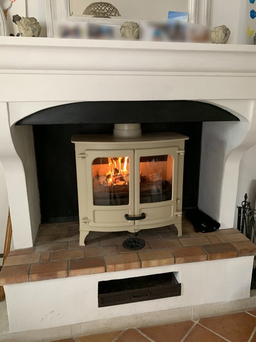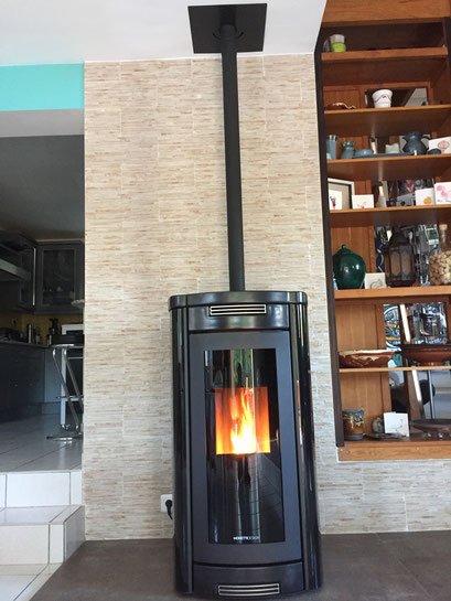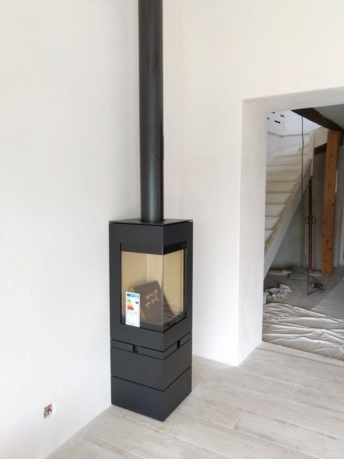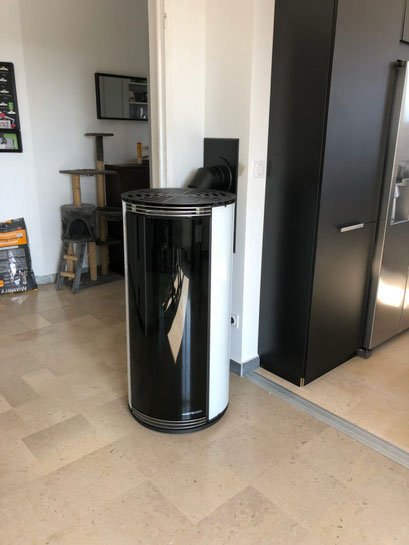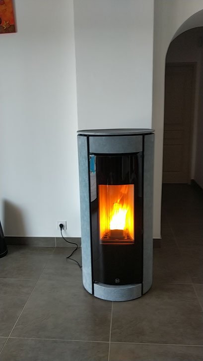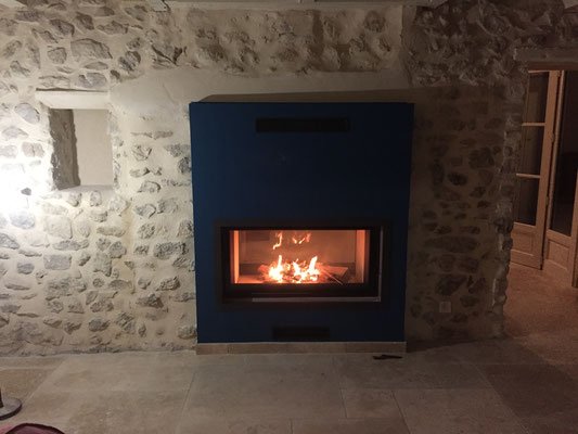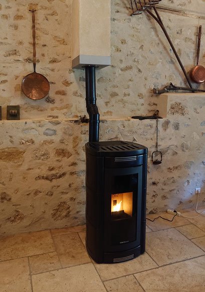 2019, Pose d’un poêle à granulés HARMAN XXV par l’équipe MATTERRA, d’inspiration néo-rétro, celui-ci s’adapte parfaitement dans une maison de village du sud Drôme. D’une puissance de 10.5kW, il chauffe aujourd’hui l’ensemble de l’habitation. Le conduit est intégré dans l’ancien boisseau de cheminée pour laisser place nette sur les murs.